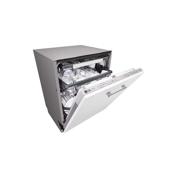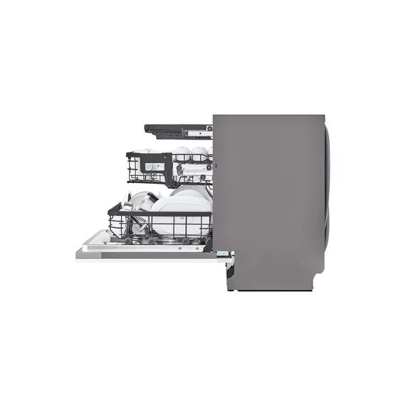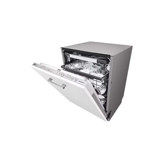 LG DBC425TS Built-In Dishwasher – 14 Place Settings, QuadWash™, TrueSteam™, EasyRack™ Plus, Inverter Direct Drive, ThinQ™ Wi-Fi هي غسالة صحون مدمجة فاخرة مصممة لتوفير تنظيف قوي، وأداء هادئ، وراحة ذكية في مطبخك. تتميز بسعة كبيرة تستوعب 14 مكانًا، مما يجعلها مثالية للعائلات والمناسبات. مزودة بتقنية QuadWash™ التي تستخدم أربعة أذرع رش متعددة الاتجاهات بدلاً من اثنين لضمان تنظيف الأطباق من جميع الزوايا، إضافة إلى وظيفة TrueSteam™ التي تطلق بخارًا عالي الحرارة لإزالة بقايا الطعام العالقة وتقليل بقع الماء على الأكواب الزجاجية. يعمل محرك Inverter Direct Drive بكفاءة عالية مع متانة طويلة الأمد وتشغيل هادئ بمستوى ضوضاء منخفض يصل إلى 44 ديسيبل ليحافظ على هدوء المطبخ. يتيح نظام EasyRack™ Plus مرونة كبيرة في ترتيب الأرفف القابلة لتعديل الارتفاع والأسنان القابلة للطي لاستيعاب الأواني والمقالي والأطباق بمختلف الأحجام. كما توفر تقنية ThinQ™ Wi-Fi إمكانية مراقبة الغسالة والتحكم بدورات الغسيل عن بُعد عبر الهاتف الذكي، مع استقبال تنبيهات الصيانة والاستفادة من ميزة Smart Diagnosis™ لحل المشكلات بسرعة. تشمل الميزات الإضافية الغسيل ثنائي المنطقة، بدء التشغيل المؤجل من 1 إلى 12 ساعة، والبرامج المتعددة مثل التلقائي، الاقتصادي، البخار، والمكثف. وتأتي الغسالة بتصميم أنيق من الفولاذ المقاوم للصدأ باللون الغرافيت الداكن ولوحة تحكم علوية مع مؤشرات LED، مما يجعلها تندمج بانسيابية مع أي مطبخ عصري مع توفير وظائف عالية الجودة.