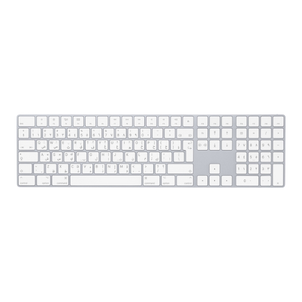 The Apple Magic Keyboard Num Keypad - Arabic is a full size keyboard designed for a comfortable and precise typing experience. It features a numeric keypad, making data entry and calculations faster and more efficient. With a sleek, slim design and rechargeable battery, it pairs seamlessly with Mac computers for reliable performance. The Arabic layout ensures convenience for users who prefer typing in Arabic while maintaining Apple’s elegant design standards.