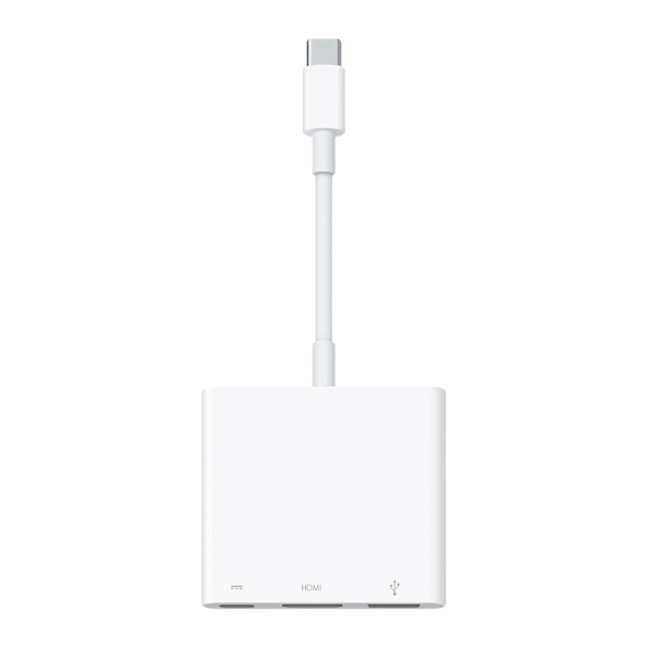 The Apple USB-C Digital AV Multiport Adapter allows you to connect your USB-C device to an HDMI display, a standard USB-A device, and a USB-C charging cable simultaneously. Its compact and lightweight design makes it ideal for travel and on the go use. With reliable Apple certified performance, it ensures seamless connectivity and high quality video output every time.