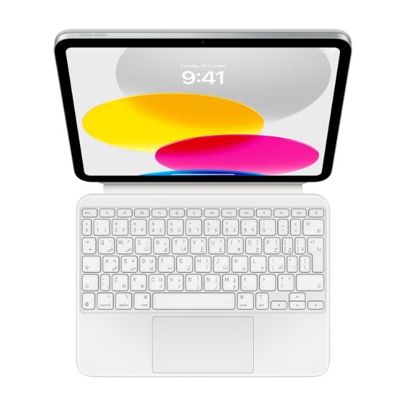 The Magic Keyboard Folio for iPad (10th generation) - Arabic provides a comfortable and responsive typing experience with well spaced keys. Its folio design protects your iPad while allowing adjustable viewing angles for easy use. With a built in trackpad and reliable Apple certified performance, it enhances productivity both at home and on the go.
