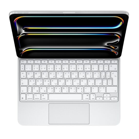 The Magic Keyboard for iPad Pro 11‑inch (M4) - Arabic offers a comfortable and responsive typing experience with well spaced keys. Its floating cantilever design allows easy viewing angles and smooth attachment to your iPad Pro. With a built in trackpad and backlit keys, it enhances productivity and usability both at home and on the go.
