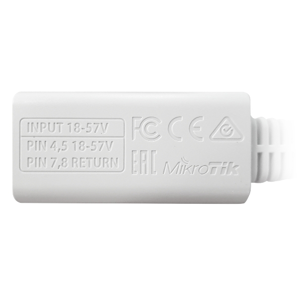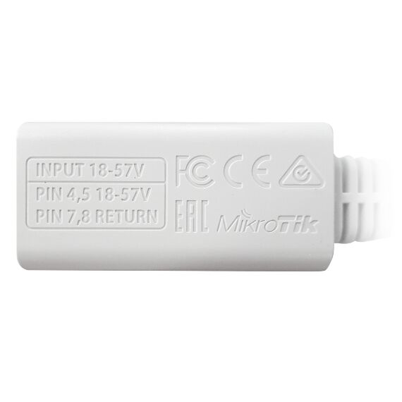 The MikroTik PoE Adapter RBGPOE is a compact, single-port Gigabit Power over Ethernet injector designed to power compatible MikroTik devices like wireless access points, routers, and cameras. It supports the 802.3af/at PoE standard, delivering up to 30W of power over a standard Ethernet cable, simplifying installation by eliminating the need for a separate power outlet at the device's location. The adapter features a Gigabit Ethernet input port for data and power from a network switch or router, and a Gigabit Ethernet output port that combines both data and power to the connected device. Its compact, plug-in design and robust build make it a reliable and convenient accessory for deploying networked equipment where power access is limited.