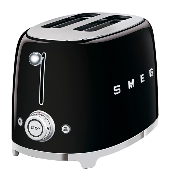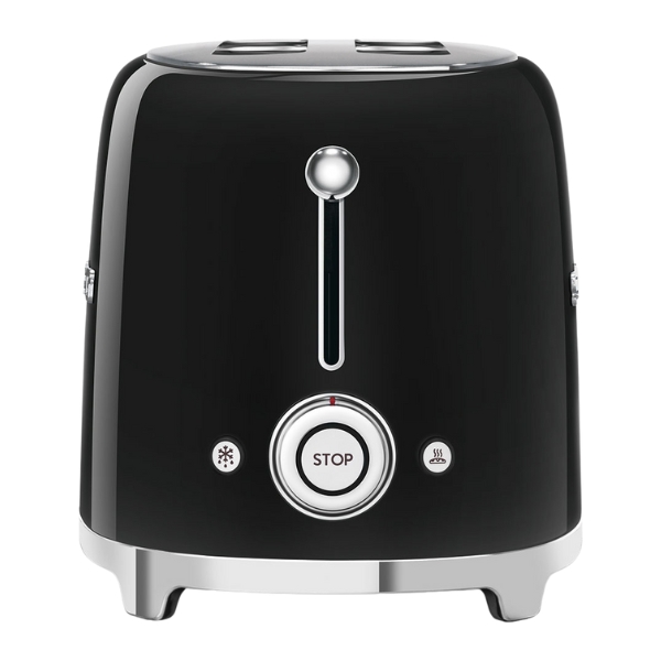 The Smeg Black toaster 2 slice masterfully combines the brand's iconic 1950s retro aesthetic with modern functionality. Its high-gloss, curvaceous design in a deep black finish makes it a striking and elegant centerpiece for any kitchen counter. Beyond its stylish exterior, it delivers consistent performance with multiple browning settings, along with practical features like a defrost function and a cancel button for ultimate control and convenience.
