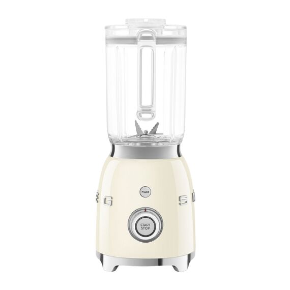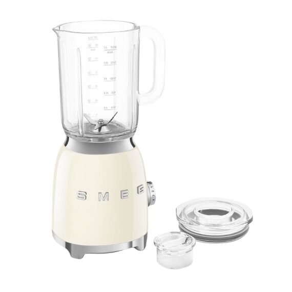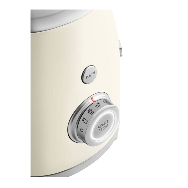 The Smeg Jug Blender in Cream embodies the brand's iconic 1950s retro style with its high-gloss, curvaceous design and soft cream finish, making it a beautiful countertop statement piece. It is engineered for both power and versatility, featuring a robust motor capable of effortlessly crushing ice and blending smoothies, soups, and sauces to a perfect consistency. This blender masterfully combines its timeless, elegant aesthetic with the modern performance required for a wide range of culinary creations.