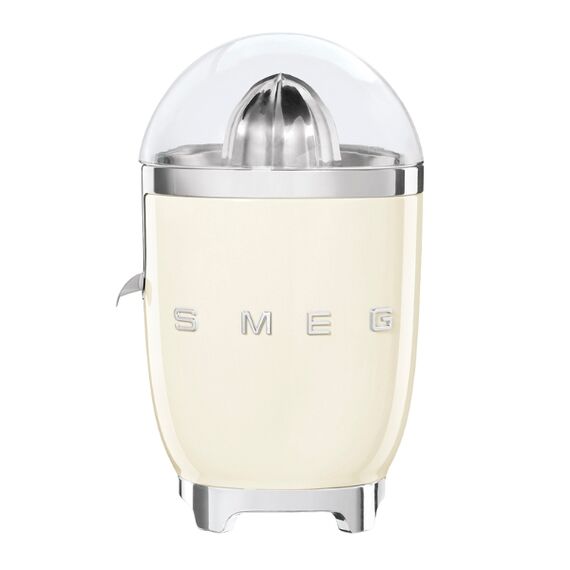 The Smeg Cream Citrus Juicer combines the brand's signature 1950s retro charm with practical functionality, featuring a soft, high-gloss cream finish and curvaceous design that elevates any countertop. Designed for efficiency, it effortlessly extracts maximum juice from citrus fruits like oranges, lemons, and limes with its powerful reamer and drip-free spout. This appliance seamlessly blends timeless elegance and everyday convenience, making it as much a delight to use as it is to display.