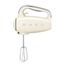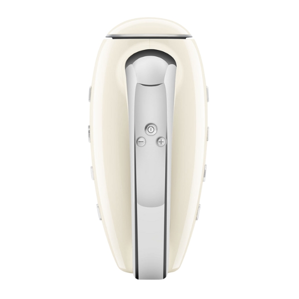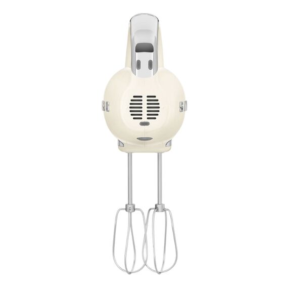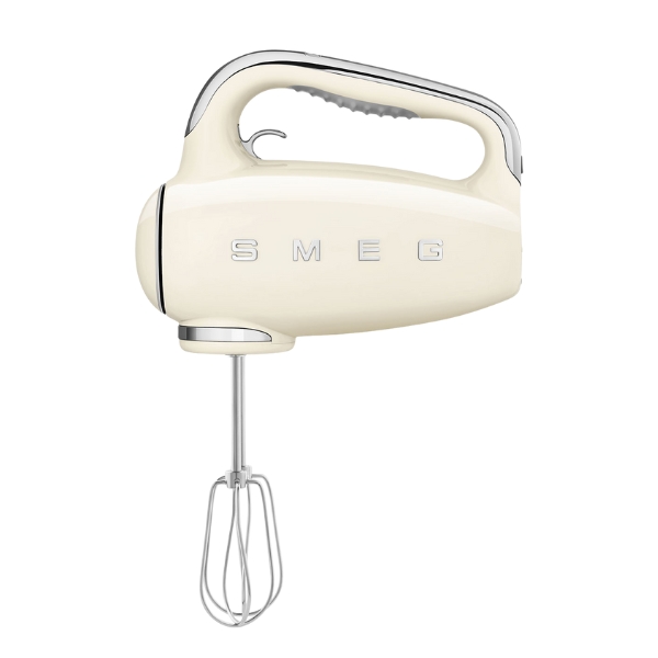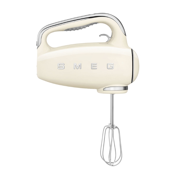 The Smeg Hand Mixer in Cream showcases the brand's iconic 50s retro design with its high-gloss, curvaceous body in a soft, elegant finish. More than just a beautiful countertop accessory, it is a powerful and versatile tool for baking, equipped with multiple speed settings to effortlessly handle tasks from whipping cream to kneading dough. With its included attachments and lightweight, ergonomic design, this mixer perfectly blends timeless aesthetic appeal with modern kitchen functionality.