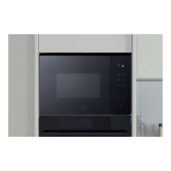 The LG Built-in Microwave Oven, Black Glass, With LED Touch Display built-in microwave oven is designed to seamlessly integrate into your kitchen, offering both functionality and style. With a 25-liter capacity, it provides ample space for various cooking needs. The 900W microwave power ensures efficient cooking, while the 1000W grill function adds versatility for grilling and browning. Equipped with 8 auto-cook presets, the microwave simplifies cooking by automatically adjusting settings for popular dishes. Additionally, 4 manual cooking modes allow for customized cooking based on your preferences. The white LED touch display offers intuitive control, enhancing user experience. Safety is paramount with the inclusion of a child lock feature, preventing unintended operation. The sleek black glass exterior and stainless steel interior not only add elegance to your kitchen but also ensure durability and easy maintenance. Whether you're reheating leftovers, defrosting frozen foods, or preparing meals from scratch, the LG MGBZ2593F built-in microwave oven delivers reliable performance and modern design to meet your culinary needs.