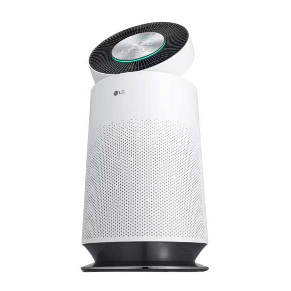 The LG PuriCare 58 m² Coverage area, 6 step filtration, PM 1.0 Sensor, Clean Booster is a high-performance air purifier designed for medium to large rooms, delivering 360-degree purification to ensure even, thorough air cleaning. Its powerful Clean Booster fan rises and rotates to distribute fresh, purified air up to 7.5 m for faster, more effective coverage. Equipped with an advanced PM 1.0 sensor, it accurately detects ultra-fine particles and odors, automatically adjusting its operation for optimal air quality. The 6-step Total Care filtration system combines a pre-filter, HEPA filter, deodorization filter, and specialized layers to eliminate dust, allergens, harmful gases, and unpleasant odors. With quiet operation, intuitive air quality indicators, and optional LG ThinQ app control, this sleek, modern purifier offers reliable performance and convenience for maintaining a healthier indoor environment.
