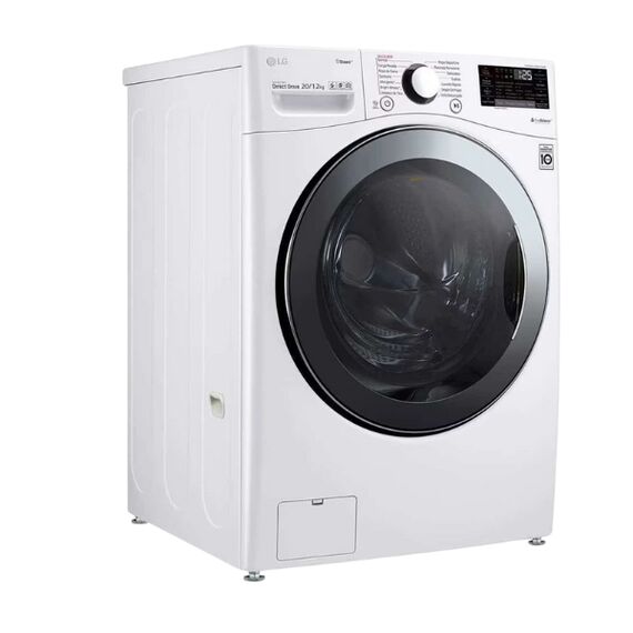 The LG Washer & Dryer 20/12kg, Direct Drive, Steam, White Color is an advanced washer and dryer combo that delivers powerful performance with impressive capacity. With 20 kg washing and 12 kg drying capacity, it’s ideal for large households and heavy laundry loads. The machine features LG’s Turbo Wash™ technology, which completes a full wash in just 29 minutes, saving time without compromising on cleanliness. Thanks to 6Motion™ Direct Drive technology, the drum moves in multiple directions to ensure deep yet gentle cleaning, preserving fabric quality. The powerful Dual Inverter Direct Drive motor ensures high efficiency, less noise, and reduced vibration during operation. The Steam function helps remove 99.9% of allergens, making it perfect for sensitive skin and cleaner clothes. You can easily pause the cycle and add missed items with the 'Pause & Add' function. Designed with a sleek white finish and modern control panel, this front-load combo offers both performance and convenience in one appliance.