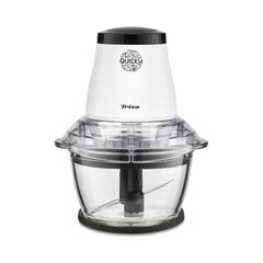The Trisa “Quicky” is a compact, powerful electric food chopper ideal for everyday kitchen tasks. It features a 550 W motor, a 1-liter heat-resistant glass bowl , and two stainless-steel blades with a “cross-cut” design to chop, grind, mix, and purée food efficiently. It can even crush ice....