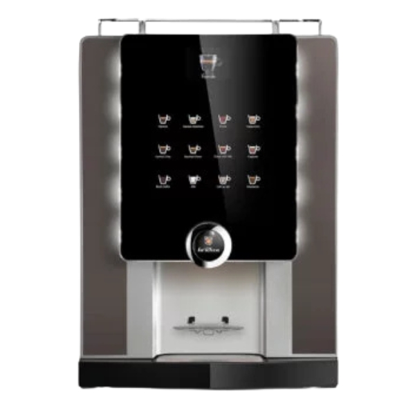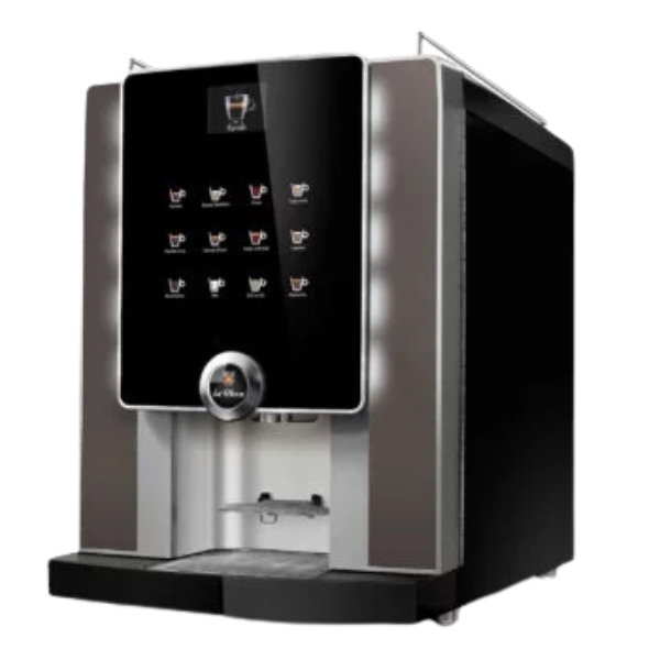 The Rhea laRhea V+ grande is a high capacity, fully automatic bean to cup machine engineered for commercial use in offices, hotels, or other demanding environments. It is built for speed and volume, featuring a powerful dual brewing system that allows two different beverages to be prepared simultaneously, drastically reducing wait times during peak hours. With a large, intuitive touchscreen interface, extensive drink customization, and separate systems for fresh milk and shelf stable milk alternatives, it delivers a wide range of barista quality coffees, espressos, and milk based drinks consistently. Its large bean and water reservoirs, along with robust construction, make it ideal for serving high traffic while maintaining performance and ease of use.