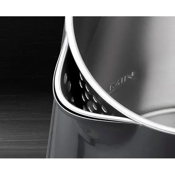 The Trisa Comfort Touch is a premium 1.5-liter electric kettle designed for both safety and energy efficiency. Its double-walled stainless steel construction ensures rapid boiling while keeping the exterior cool to the touch. With a powerful 2200W heating element, it offers quick boiling times. The kettle features Strix control for automatic shut-off, overheating, and dry-run protection, along with LED illumination for added safety. The 360° swivel base allows for easy placement and cord storage. Its sleek black finish adds a modern touch to any kitchen.
