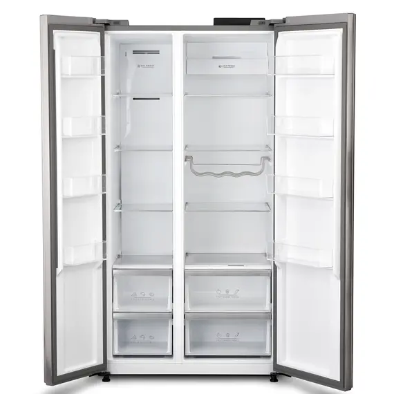 The Trisa Side-by-Side Fridge 592L Inox offers a premium cooling solution with ample storage for fresh and frozen foods. With a total capacity of 592L, it provides organized compartments for easy access and efficient storage. The inox finish gives it a modern and elegant look, while its energy-efficient design makes it ideal for large families and contemporary kitchens.
