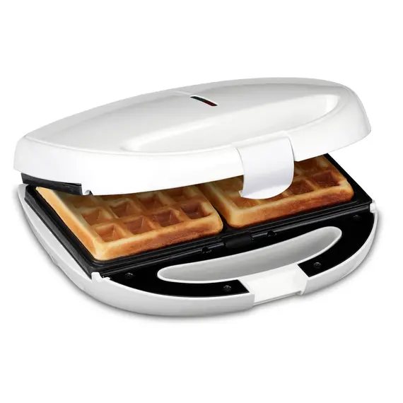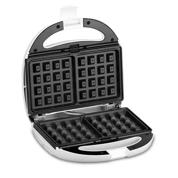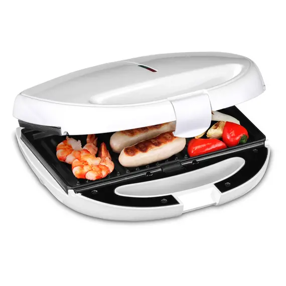 The Trisa “Tasty Snack” is a 2-in-1 sandwich toaster with interchangeable grill and waffle plates. It offers power around 800 W and supports uniform heat distribution, automatic temperature control, and a lid-lock mechanism. Comes with control lights for operation and readiness. It’s designed for grilling sandwiches, making waffles, and general grilling, with non-stick removable plates for easy cleaning.
