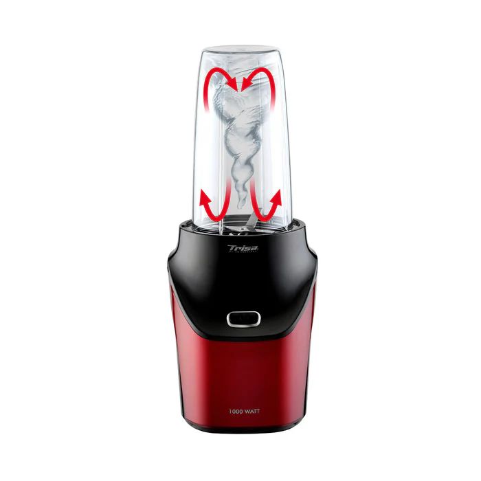 The Trisa Nutri Blender “Energy Boost” in red is a compact and powerful personal blender designed for quick and efficient blending. It features a 600 W motor and operates at speeds up to 22,000 RPM, making it ideal for preparing smoothies, shakes, and purees. The blender comes with a 600 ml BPA-free Tritan bottle, perfect for on-the-go use. Its compact design ensures easy storage, and all removable parts are dishwasher safe for convenient cleaning.