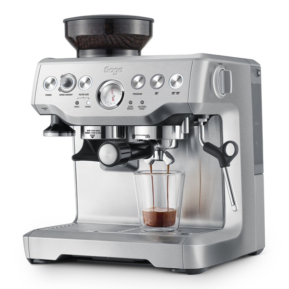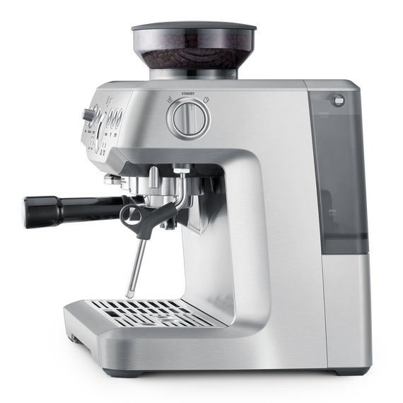 The Sage Barista Express Espresso Machine is a semi-automatic espresso machine that combines a built-in conical burr grinder (with about 16 grind settings) and dose control to deliver fresh ground coffee directly to a 54 mm stainless steel portafilter. It features a 15-bar Italian pump with over-pressure regulation for optimal extraction, and uses a Thermocoil heating system with PID temperature control to keep brew temperature stable. The Barista Express includes a manual steam wand for microfoam milk texturing suitable for lattes and cappuccinos, plus a 2-litre removable water tank and a 250-g bean hopper. It has a brushed stainless-steel casing, simple button interface, volumetric control for one- or two-shot espresso, and comes with accessories like a dosing funnel, razor trimming tool, and cleaning disc. It’s ideal for home users who want serious espresso-making capability without needing a full commercial setup.
